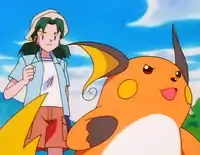 | Raichu is the only known Pokémon Katrina has, nicknamed Raichie (Japanese: ライちゃん Rai-chan). It appeared when Ash was looking for somewhere to train for the Indigo Plateau Conference. He found Katrina, and they decided to battle. Ash sent his Pikachu out to battle, but before they could start Team Rocket appeared to try to capture Pikachu. However, they caught Raichu instead. Raichu used Thunderbolt and Mega Kick to get out and knock Team Rocket over. It then appeared on stage for Cleavon Schpielbunk's film, where they had to show off their dancing skills.