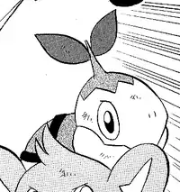 During the race between Katsuya and his friends, Nanae was sent out in order to stall Soro after he used Drapion as a ride. Nanae then took on Feraligatr after the fully-evolved Johto starters appeared. Nanae's only known move is Razor Leaf. | ||