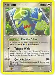 Kecleon (Japanese: カクレオン Kakureon) is a Colorless-type Basic Pokémon card. It is part of the EX Legend Maker expansion.