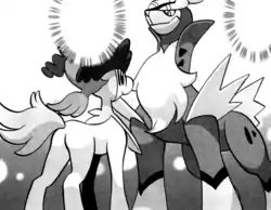 In Something Suspicious, Keldeo and its masters arrived at the P2 Laboratory, where they found the Shadow Triad in battle with the Striaton City Gym Leaders. When Keldeo asked which side was evil, Cobalion stated that battles between humans had no moral alignments. Sensing evil from the Shadow Triad, Keldeo stepped in to attack them with its sword, easily pushing back their Pokémon. The Shadow Triad retaliated once Keldeo let its guard down, forcing its masters to step in and protect it. Cobalion praised Keldeo's use of its sword, but informed that it order to obtain another sword, it needed to be resolute. Cobalion, Terrakion, and Virizion used their swords to send both the Shadow Triad and the Striaton Gym Leaders flying. As Keldeo and its masters left, the Shadow Triad had their secret weapon, Genesect, fire its Techno Blast on them. Keldeo's masters stepped in front of the blast to protect their student, but were frozen and fell into the sea.