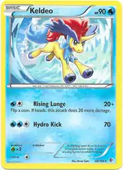 Keldeo (Japanese: ケルディオ Keldeo) is a Water-type Basic Pokémon card. It is part of the Boundaries Crossed expansion.