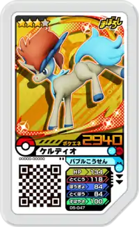 Keldeo (Japanese: ケルディオ Keldeo) is a Grade 3 Pokémon Ga-Olé disk. It is part of the fifth Dash set.