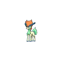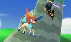 PAL: The Mythical Pokémon Keldeo looks a lot like a multicoloured unicorn. In its Resolute Form, its horn grows longer and its vision improves. It can also use Secret Sword in that Form, and that's what it will do in this game. If Keldeo starts charging after you, watch out - that huge horn will send you flying!