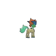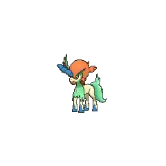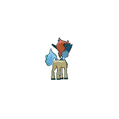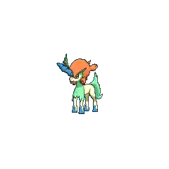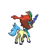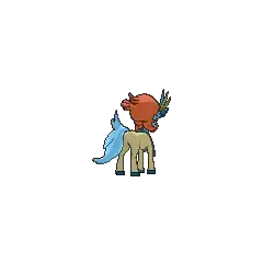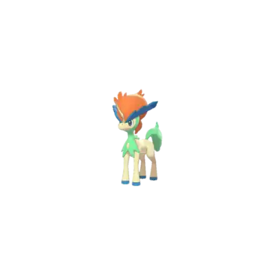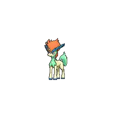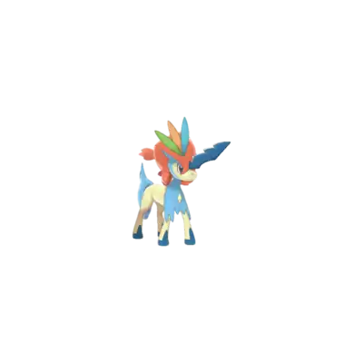 Upon learning Secret Sword, Keldeo transforms into its Resolute Form. The dark blue protrusions become shorter and lighter in color, resembling ears. Its horn becomes dark blue and grows larger and ridged. On the side of its head are three feathers colored aqua blue, green, and orange.