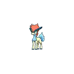 Keldeo was trained by the other members of the Swords of Justice. Keldeo tends to cross the world and often appears at beautiful watersides. Keldeo also travels in order to further improve itself through training. It can walk across the water by ejecting water from its hooves. It is said Keldeo must endure harsh battles in order for the forehead horn to develop, which then its true power will be awakened.