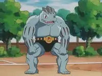 Kenzo called out his Machoke to battle Shiro's Hitmonlee. Just like its Trainer, Machoke appears to be quite old, and its back problems forced it to forfeit its match against Shiro, allowing Chigusa to take on the challenge.