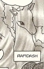 Rapidash was first shown in Vulpix and Cyndaquil as one of Kiaraway's other Pokémon. Later, in his first appearance in person, he picks up Coconut while riding on horseback on Rapidash. He is periodically seen riding Rapidash as a mode of transportation.
