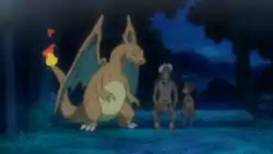 In Full Moon and Many Arms!, Charizard joined the Ride Pokémon on a pursuit to stop Necrozma from attacking and absorbing Lunala. Charizard managed to hit it with Flamethrower, allowing Dragonair, Metang, and Flygon to attack it as well, though it shrugged the attacks off and retaliated.