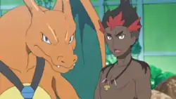 Ever since Kiawe's grandfather gave Charizard to him, Kiawe has used it as transport, usually from his home on Akala Island, to Melemele Island, in order to attend the Pokémon School. He also uses it in his job of delivering his families own dairy made products to places on Akala and other islands in Alola. It first appeared in Alola to New Adventure!, where Team Skull members Tupp, Rapp, and Zipp tried beating Kiawe in a battle so they could steal Charizard. While Kiawe beat them with Turtonator, Charizard chose to lay down and relax, unworried about the battle.