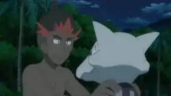 In Homecoming and the Brilliant Professional Golfer, Kiawe was attacked by Gladion after refusing to tell him where the Ruins of Life were located. After learning of situation, Sun, Moon, Lana, and Mallow traveled to Memorial Hill, where they found an unconscious Kiawe and Marowak lying there, defeated. Marowak and Kiawe were healed with Moon's medicinal skills.