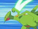 During the battle, the King of Pokélantis used Sceptile to battle Brandon's Regirock. However, Ash was still conscious enough to actively battle with Brandon, though not enough that he knew he was being possessed. Although Brandon managed to break the King's control over Ash a couple of times, it wasn't enough. The King was shown to have little concern for human life as he directed Sceptile to avoid one of Regirock's Hyper Beam attacks by using the referee Samuel as a shield. In another instance of dirty battling, he ordered Sceptile to destroy the ceiling of the Battle Pyramid, causing rubble to crash down on Regirock, something that Ash would never do.