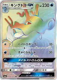 Kingdra (Japanese: キングドラGX KingdraGX) is a Water-type Stage 2 Pokémon-GX card. It was first released as part of the Dragon Majesty expansion.
