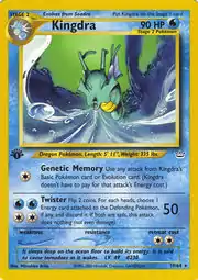 Kingdra (Japanese: キングドラ Kingdra) is a Water-type Stage 2 Pokémon card. It is part of the Neo Revelation expansion.