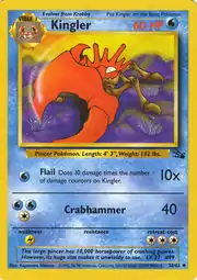Kingler (Japanese: キングラー Kingler) is a Water-type Stage 1 Pokémon card. It is part of the Fossil expansion.
