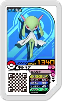 Kirlia (Japanese: キルリア Kirlia) is a Grade 2 Pokémon Ga-Olé disk. It is part of the second Dash set.