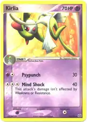 Kirlia (Japanese: キルリア Kirlia) is a Psychic-type Stage 1 Pokémon card. It is part of the EX Emerald expansion.