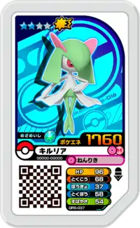 Kirlia (Japanese: キルリア Kirlia) is a Grade 2 Pokémon Ga-Olé disk. It is part of the fifth Grand Rush set.
