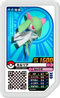 Kirlia (Japanese: キルリア Kirlia) is a Grade 2 Pokémon Ga-Olé disk. It is part of the fifth Ultra Legend set.