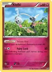 Klefki (Japanese: クレッフィ Cleffy) is a Fairy-type Basic Pokémon card. It is part of the Furious Fists expansion.