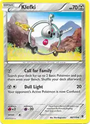Klefki (Japanese: クレッフィ Cleffy) is a Metal-type Basic Pokémon card. It is part of the Phantom Forces expansion.