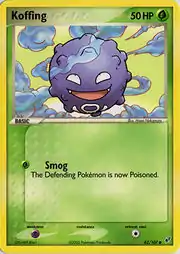 Koffing (Japanese: ドガース Dogars) is a Grass-type Basic Pokémon card. It is part of the EX Deoxys expansion.