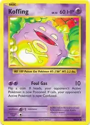 Koffing (Japanese: ドガース Dogars) is a Psychic-type Basic Pokémon card. It is part of the Evolutions expansion.