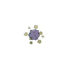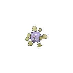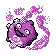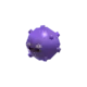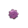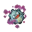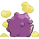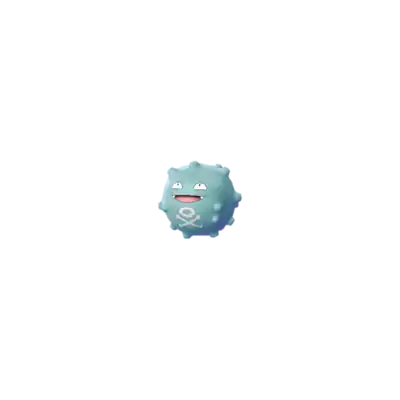 Koffing is a spherical Pokémon filled with toxic gases. It has vacant eyes and a wide mouth that usually has two pointed teeth in the upper jaw. However, a full set of teeth has been seen in the anime. Below its face is a cream-colored skull-and-crossbones marking. Several geyser-like protrusions, which usually release a mustard-colored gas, cover this Pokémon's body. Koffing's purple skin is very thin, and over-inflation can cause it to explode.