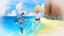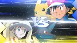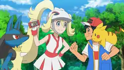 When Ash and his friends were escaping the cave in Calling from Beyond the Aura!, Pikachu escaped with Korrina and Clemont. Later, Korrina commanded Pikachu in a battle against Team Rocket. Under Korrina's command, Pikachu used Thunderbolt, Quick Attack, and Iron Tail. | ||