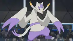 In A Festival Reunion!, it was revealed to have evolved into a Mienshao when it battled Ash's Gengar in the World Coronation Series. It was then defeated by Dragonite. Mienshao's known moves are High Jump Kick, Drain Punch, Force Palm, Swift, Acrobatics, U-turn, and Double Slap*. | ||