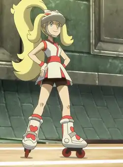 Korrina (Japanese: コルニ Corni) is the Gym Leader of Shalour City's Gym, known officially as the Shalour Gym. She specializes in Fighting-type Pokémon. She gives the Rumble Badge to Trainers who defeat her. In Pokémon the Series: XY, she is a recurring character during the course of the saga and temporarily traveled with Ash and his friends from Mega Revelations! to The Bonds of Mega Evolution!. She returns in Pokémon Journeys: The Series as a participant in the World Coronation Series and a minor rival for Ash.