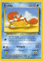 Krabby (Japanese: クラブ Crab) is a Water-type Basic Pokémon card. It is part of the Fossil expansion.