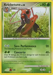 Kricketune (Japanese: コロトック Korotok) is a Grass-type Stage 1 Pokémon card. It is part of the Mysterious Treasures expansion.