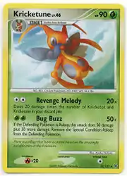 Kricketune (Japanese: コロトック Korotok) is a Grass-type Stage 1 Pokémon card. It is part of the Platinum expansion.
