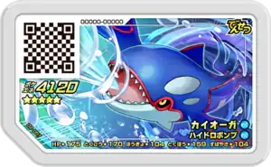 Kyogre (Japanese: カイオーガ Kyogre) is a Grade 5 Pokémon Ga-Olé disk. It is part of the second Dash set.