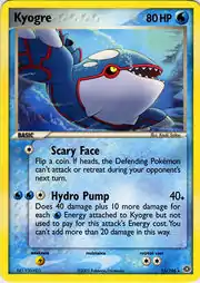 Kyogre (Japanese: カイオーガ Kaiorga) is a Water-type Basic Pokémon card. It is part of the EX Emerald expansion.
