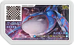Kyogre (Japanese: カイオーガ Kyogre) is a Grade 5 Pokémon Ga-Olé disk. It is part of the second Grand Rush set.