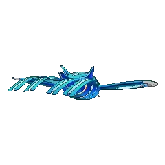 "A Sea Basin Pokémon. It brought down heavy rains, which formed seas and relieved droughts. It is usually found slumbering at the bottom of an ocean trench. Its attack Sheer Cold is a technique so powerful, it causes any opponent it strikes to faint instantly. In battle, it causes clouds to form and drenches the area in rain. It once had a fierce battle with Groudon."