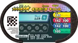 Kyurem (Japanese: キュレム Kyurem) is a Grade 6 Pokémon Mezastar tag. It is part of the third set.