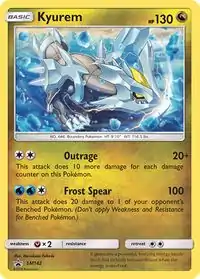 Outrage is a move in the Pokémon games that Kyurem can learn. Frost Spear is an attack that first appeared on Kyurem from Plasma Freeze. This card's Pokédex entry comes from Pokémon Y.