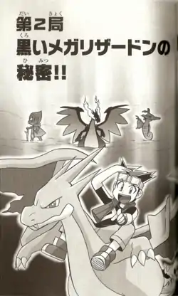 (Japanese: 黒いメガリザードンの秘密!! Secret of the Black Mega Lizardon!!) is the second chapter of the Pokémon - The Legend of the Dragon King manga created by 石井敬士 Takashi Ishii.