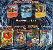 The LEGEND Perfect Set (Japanese: LEGEND パーフェクトセット) serves as the last item of LEGEND era merchandise and was available to purchase on July 10, 2010 exclusively at Pokémon Centers and participating cinemas screening Zoroark: Master of Illusions. All LEGEND era expansions are represented in the set, with one booster pack each from HeartGold Collection, SoulSilver Collection, Reviving Legends, and Clash at the Summit included. The set also includes three promotional cards: shiny versions of Entei, Raikou, and Suicune as they appear in the thirteenth movie, with attacks based on those obtained via the Crown Beasts distribution.