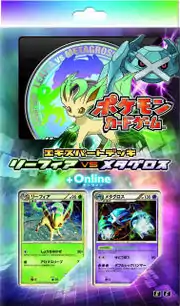The Leafeon vs Metagross Expert Deck +Online (Japanese: エキスパートデッキ リーフィアVSメタグロス +Online) was also released on November 20, 2009 and is aimed at more experienced players. The kit contains two 60-card decks: the Leafeon deck includes primarily Grass-type Pokémon and focuses on inflicting Special Conditions; the Metagross deck includes predominantly Psychic-type Pokémon and focuses on targeting the opponent's Bench. Both decks also utilize the strategy of Energy circulation. In addition to the cards, the kit comes with a Pokémon Card Game Online CD-ROM, allowing players to battle each other via the Internet, as well as a rulebook, a coin, and a set of damage and status counters.
