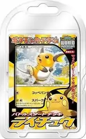 The Raichu Battle Starter Deck (Japanese: バトルスタートデッキライチュウ) rounds off the collection of Battle Starter Decks and is designed with a strategy involving speed. Each of the Lightning and Fighting-type Pokémon have Retreat Costs of either 1 or 0 and attacks with small Energy requirements, allowing the Stage 1 Pokémon, including the Mouse Pokémon Raichu, to be set up quickly. The deck comes with a "How to Play Quick Guide".
