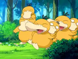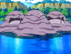 Several Psyduck retreated from the lake after a group of Muk took over, resulting in them blocking a road so that three Psyduck Eggs could hatch without disturbance. Ash and his friends helped in driving the Muk away so that the Psyduck could live by the lake and stop blocking the road. The Muk were sent flying and landed in a nearby lake, which was polluted and home to other Muk.