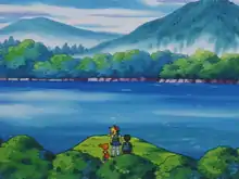 The Lake of Rage first appeared in Raise the Red Gyarados, where Silver came to inspect it per Lance's instructions, followed by Gold. The two were soon attacked by a swarm of Gyarados. Based on the static on their Pokégear screens, Silver deduced that a radio wave was behind the lake's Magikarp evolving and the Gyarados rampaging. Eventually, Silver managed to locate the source of the radio waves, a Red Gyarados, and proceeded to capture it with Gold's help, stopping the radio waves. However, they were then approached by the Masked Man.