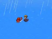 In Pokémon HeartGold and SoulSilver, it will rain at the lake every day. After catching, defeating, or fleeing from the Gyarados, it will not rain on Wednesday, and the water level will drop. Different items are accessible and different Trainers appear depending on the weather.