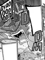 Gyarados evolved from a Magikarp sometime before the events of the manga. It debuts in Extricated from Exeggutor together with Lance's other Pokémon. Later was used to shield Lance from the lava on Cerise Island using its bubbles.