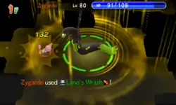 Land's Wrath (Japanese: グランドフォース Ground Force) is a damage-dealing Ground-type move introduced in Generation VI. It is one of the signature moves of Zygarde.