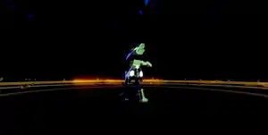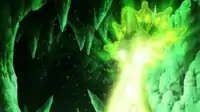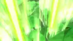 Zygarde 10% Forme glows and causes beams of green light to emerge from the ground, causing the ground to crack and break. | ||