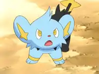 That night in the Factory, Landis was watching his father examining Team Rocket's fake Pokétches as Shinx suddenly wandered off. Minutes later, they met up with Ash, Dawn, and Brock to tell them that Shinx had gone missing. They followed the trail of Pokémon until they found a huge box that all of the Pokémon were getting into, including Shinx. Landis tried to rescue Shinx, but Dawn rescued him from being crushed by the door. Suddenly, they found out that Team Rocket was behind this as they took the box away on their balloon. Dawn's Buneary launched an Ice Beam, freezing Team Rocket, snapping all of the Pokémon out of Psyduck's hypnotism, and freeing Shinx. Team Rocket sent out Carnivine and Seviper; Piplup and Buneary finished them off, but Pikachu was left worn out. Shinx decided to use Spark to recharge Pikachu, allowing him to launch a Thunderbolt that sent Team Rocket blasting off. Shinx's only known move is Spark. | ||